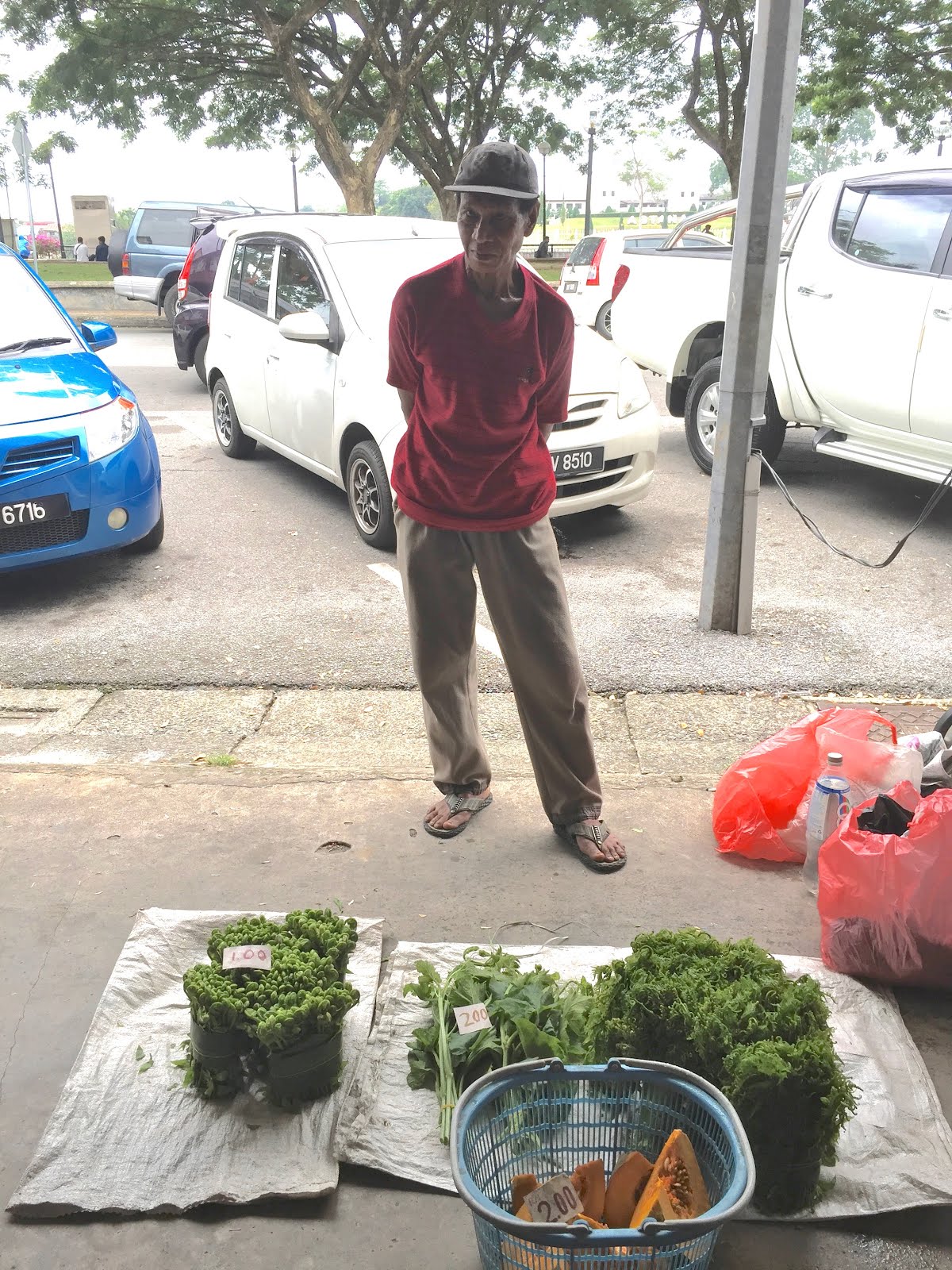 On the other side of the river was a little village where everything was a lot more authentic and a lot less touristy. We got to try these deep fried bananas and layer cakes, which are both really popular here in Sarawak. One of the things that we saw that really stood out to me was their fish. They had fish almost on every street, but there wasn't any way of keeping it cool that I saw. All that they had was fans over the fish. I still don't know the reason behind that, although I'm assuming it's to keep the flies off of them. The other thing that stood out to me was the fact that there were a lot more cats wandering around the street. I know that Kuching means "cat" in Malay, but I didn't know that there were this many cats in the city. We had dinner at a little outside food court there and I thought it was hilarious how there were so many cats moseying around everywhere. All of the cats were really calm and friendly and none of them tried to steal anybody's food, which I thought would happen for sure.